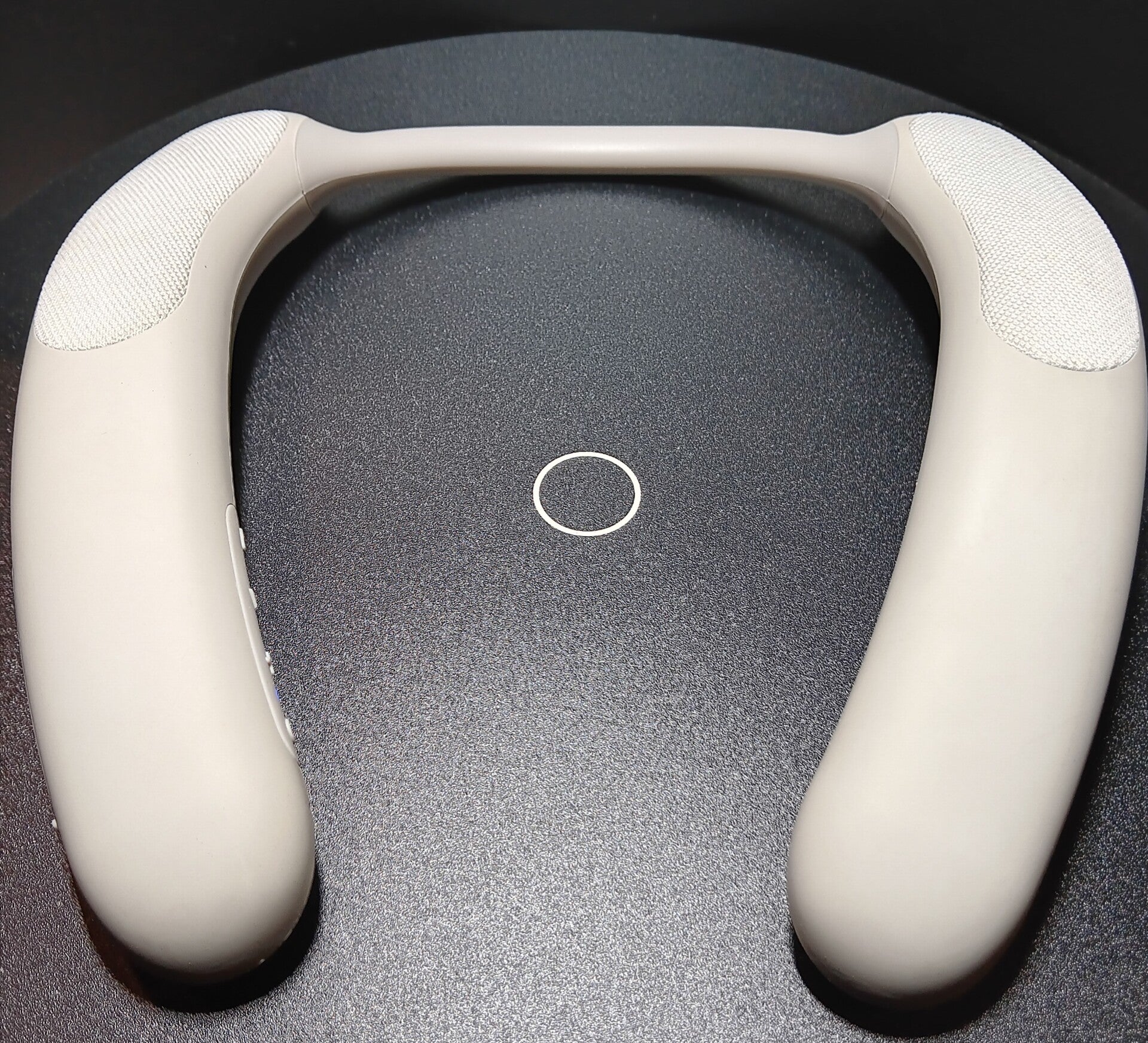Check this new bluetooth speaker design. Neckphones, listen to your favorite music or podcast, also with built in mic, so you can answer the phone and use them to have a hands free phone conversation.